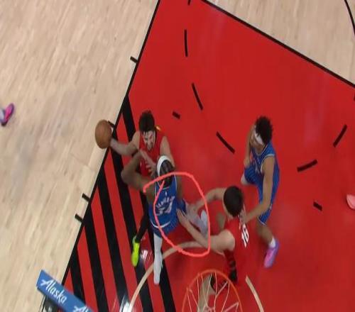 還有一次犯規(guī)發(fā)生在第三節(jié),楊瀚森掩護(hù)的時(shí)候,還是用手多帶了一把防守人,后者順勢(shì)倒地,楊瀚森被吹掩護(hù)犯規(guī)。還是老問題,掩護(hù)的時(shí)候容易上手被裁判抓到。有時(shí)候也是楊瀚森太想擋住對(duì)手,他的動(dòng)作可能不至于讓對(duì)手倒地,但那可是NBA級(jí)別的防守人,借力倒地的本事太強(qiáng)了。